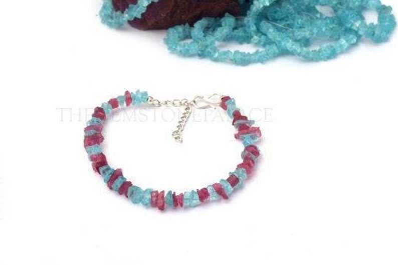 92.5 Sterling Silver 7-8"Long Natural Raw Apatite and Pink Tourmaline Gemstone Cuff Bracelet Women Cute Gift Wholesale