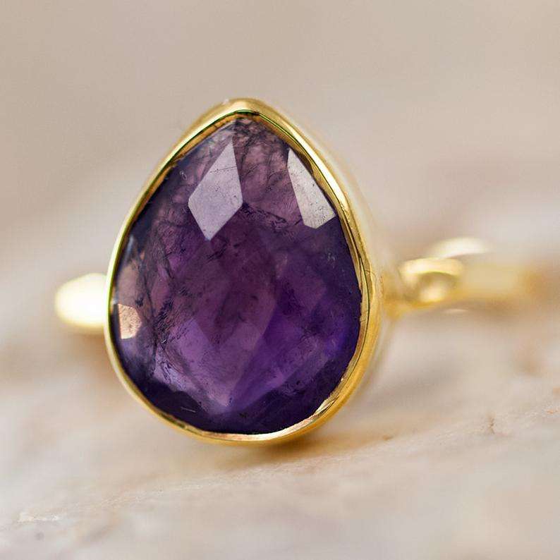 92.5 Sterling Silver Beautiful Infinity Ring Natural Purple Amethyst Gold Polished Faceted Teardrop Shape Gemstone