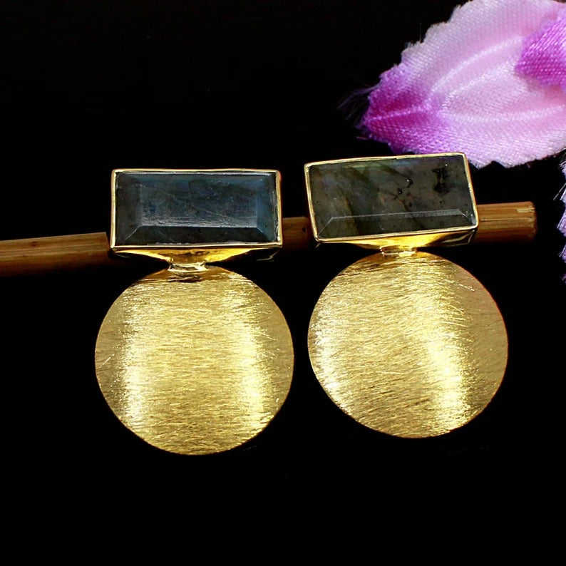 92.5 Sterling Silver Fine Cuff Earrings with Labradorite Gemstone 20x10mm 13.91g