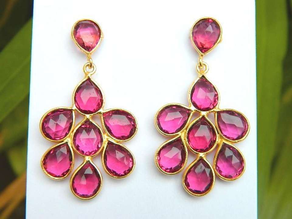 92.5 Sterling Silver Gold Polish Pink Quartz Long Dangle Earrings Wholesale Jewelry Women Cute Gift Manufracture
