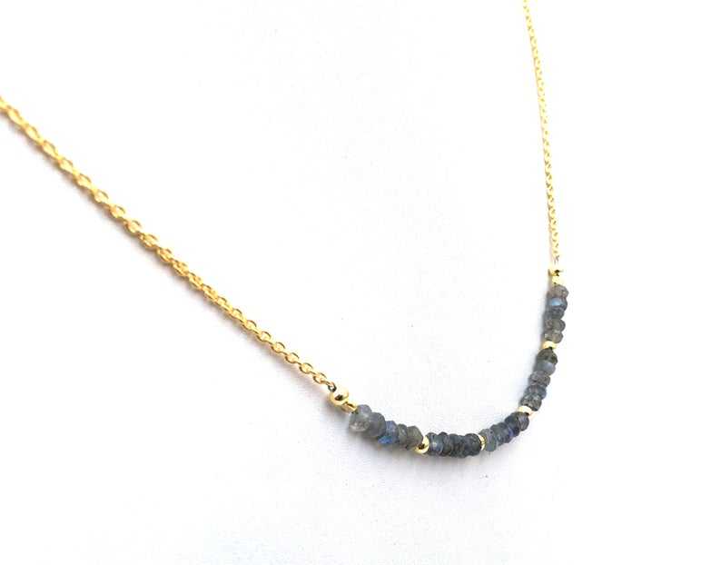 92.5 Sterling Silver Gold Polished 20"Long Natural Labradorite Blue Fire Gemstone Beaded Bar Necklace Women Jewelry