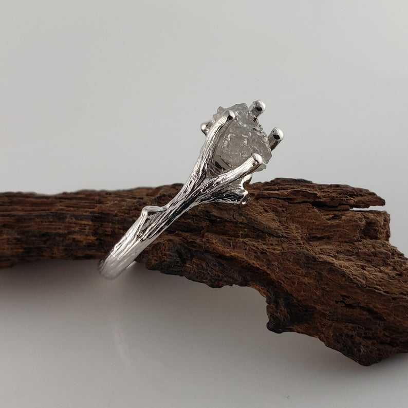 92.5 Sterling Silver Natural Herkimer Diamond Rough Shape Gemstone Finger Ring Band Women Gift Christmas Sale