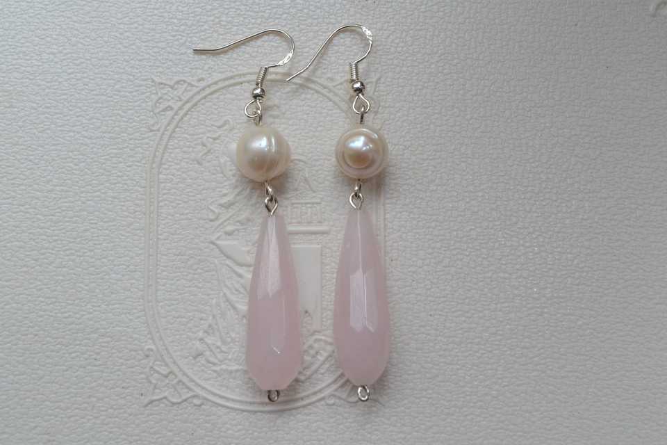 92.5 Sterling Silver Natural Rose Quartz Huge Size Faceted Drop and Pearls Earrings Jewelry Women Cute Gift Wholesale