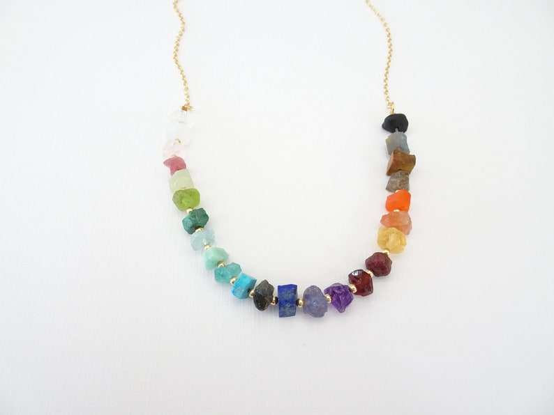 92.5 Sterling Silver Natural Untreated Raw Multi Gemstone Handmade Necklace 24"Long Indian Manufracture