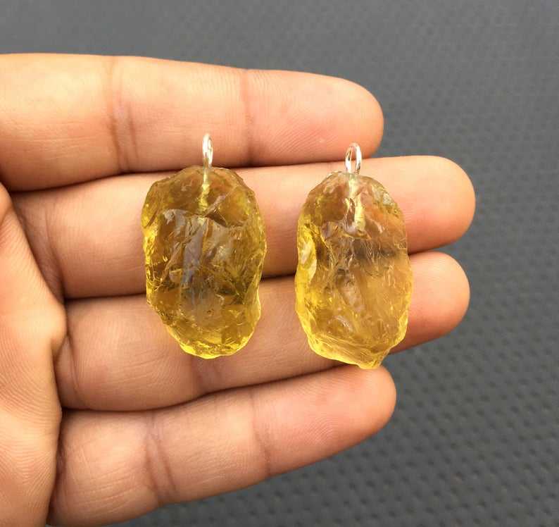 92.5 Sterling Silver Pendant Natural Lemon Quartz Gemstone Untreated Rough Handmade Jewelry Gift Manufracture