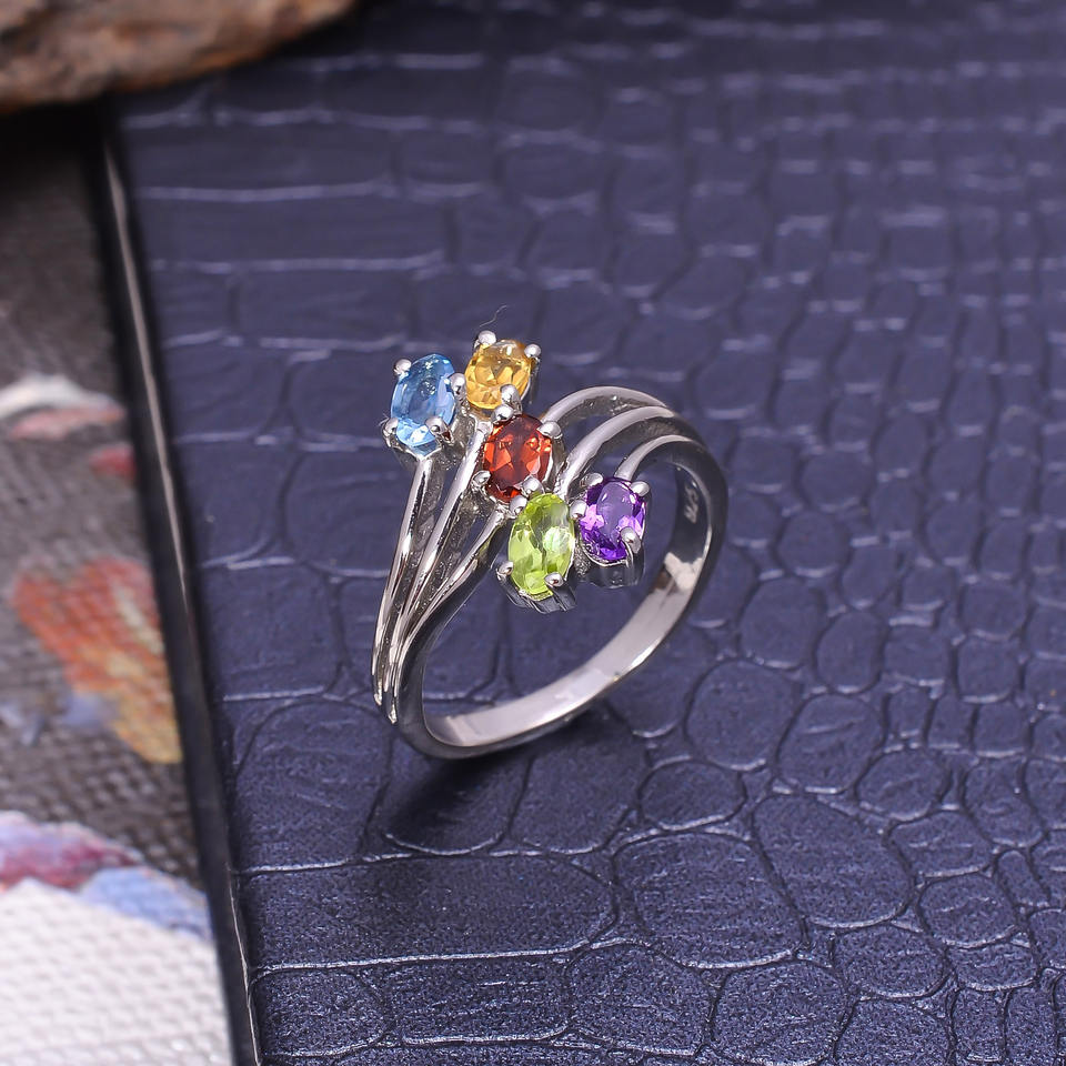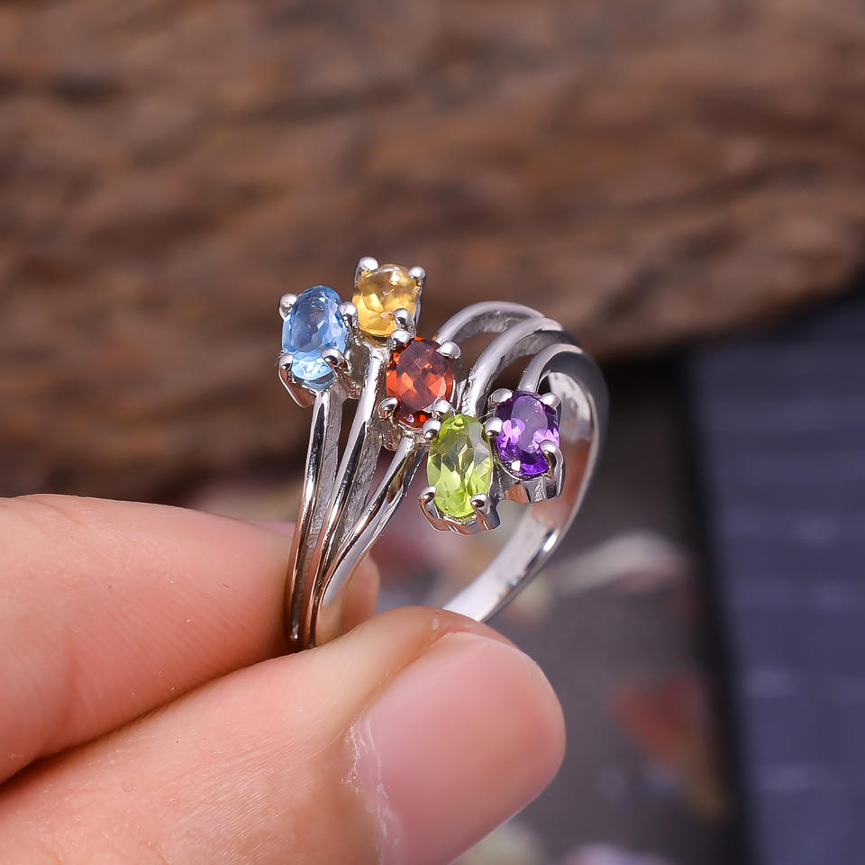 92.5 Sterling Silver Ring 3.7 Gram Natural Multi Gemstone Oval Shape Women Jewelry Beautiful Classic Finger Band
