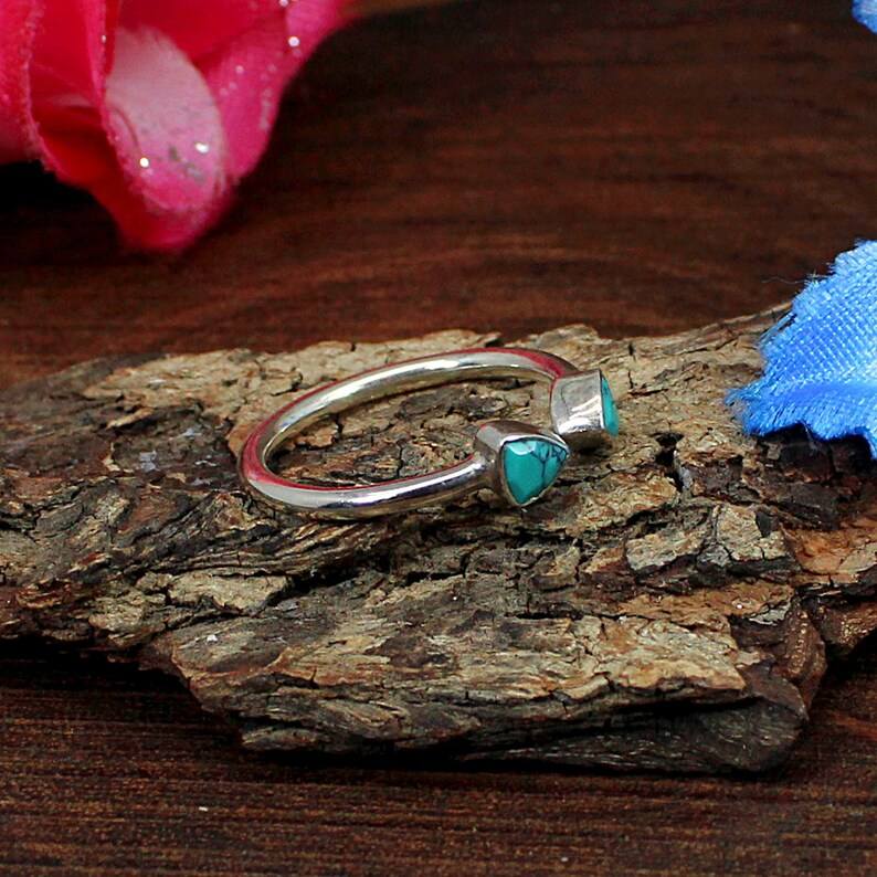 92.5 Sterling Silver Ring with Turquoise Zircon Gemstone Rhodium Plated Vintage Style Cute Bezel Setting Jewelry
