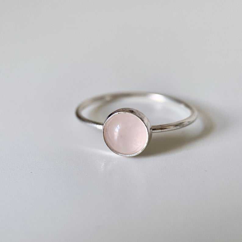 92.5 Sterling Silver With Gold Polished Natural Pink Rose Quartz Round Shape Gemstone Handmade Finger Band Ring