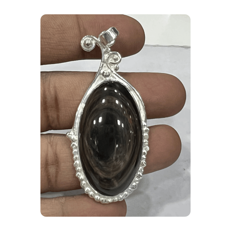 925 Fire Eye Obsidian Gemstone Fashionable Sterling Silver Pendant with High Rohodium Polish Chains and Necklaces Gift Jewelry