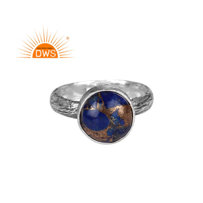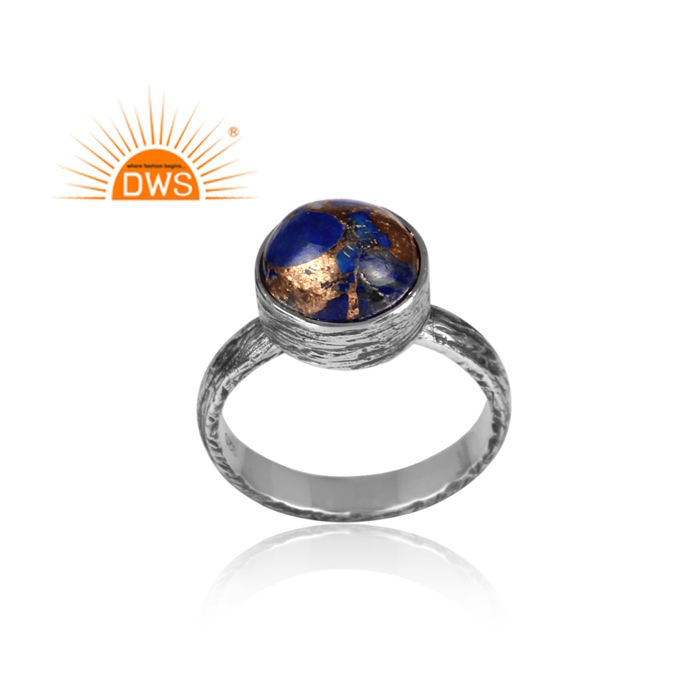 925 Oxidized Sterling Silver Engagement Ring Round Cut Lapis Lazuli Natural Gemstone Bezel Set Promise Ring Jewelry Supplier