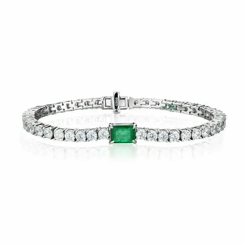 925 Silver 6.50 Ct Round Brilliant Cut Moissanite Luxury Unisex Tennis Bracelet