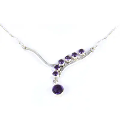 Wave-like Structure,Round-cut Amethyst Stones,Pear-shaped PendantDesign