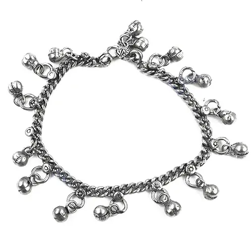 925 Silver Anklet for Women with Diamond and Bell Bohemian Jewelry Gift