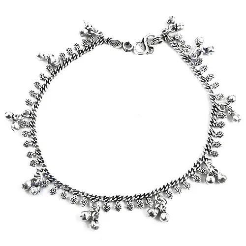 925 Silver Anklet with Diamond Bells Cute Gold Plated Indian Bridal Jewelry for Women Gift