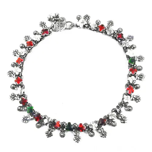 925 Silver Anklet with Gold Plating Women's Floral Pattern Jewelry