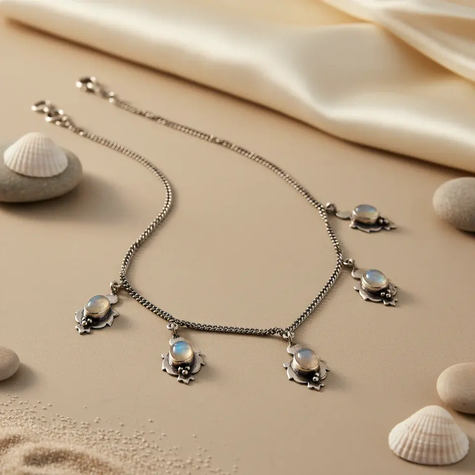 925 Silver Anklet with Moonstone Diamond Crystal Rhinestone Gold Plated Dainty Silver Jewelry for Women