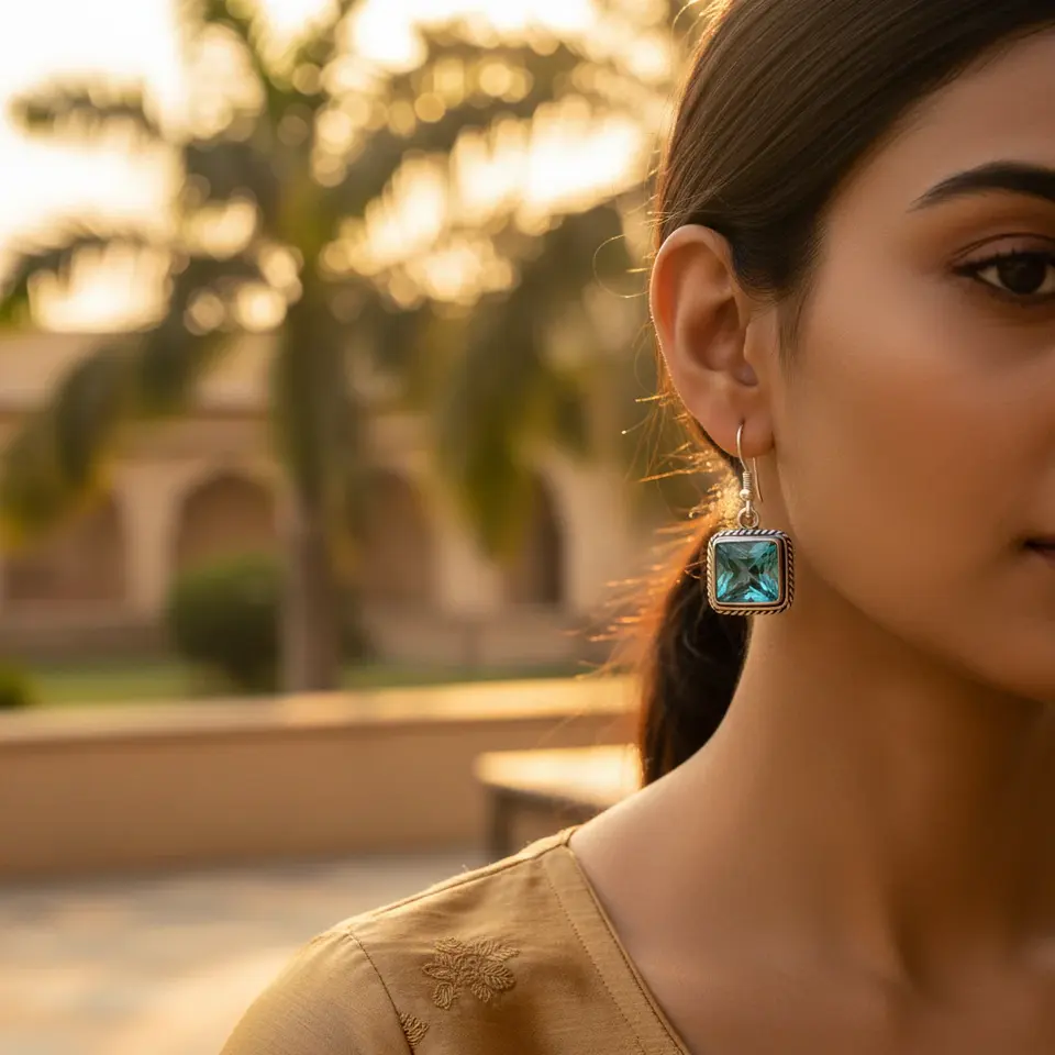 925 Silver Blue Topaz Square Earrings Women's Gold Plated Jewelry for Engagement Wedding Anniversary Party Pear Cut Diamond Main