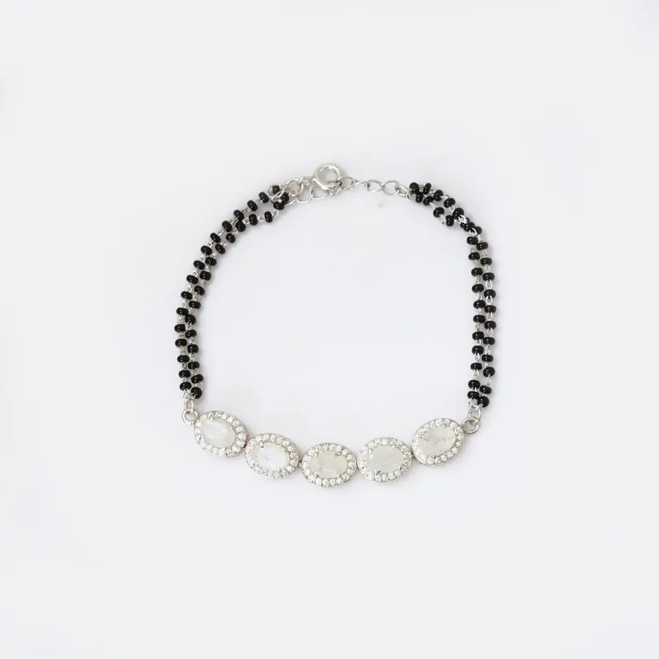 Material:925 Sterling Silver,Moonstone,Cubic Zirconia,Black Beaded Chain