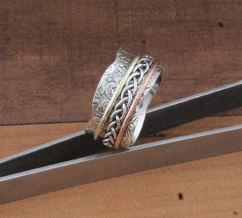 925 Silver & Brass Classic Spinner Band Ring Mixed Metal Fidget Band Men's Party Wedding Gift Idea