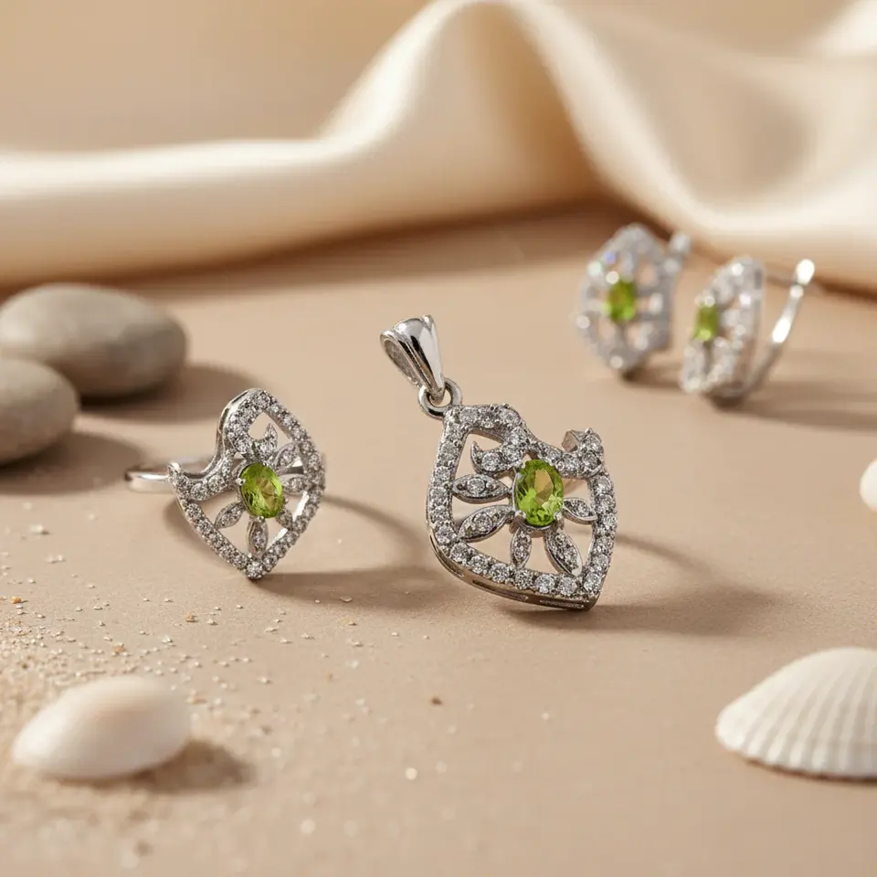 925 Silver Bridal Jewelry Set with Peridot Diamond White Gold for Wedding and Party-Classic Elegant Earrings Ring Pendant