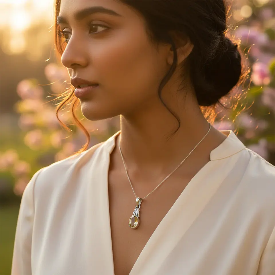 925 Silver Citrine Pendant for Women Handmade Rose Gold Gemstone Jewelry with Rhodium Plating Gift