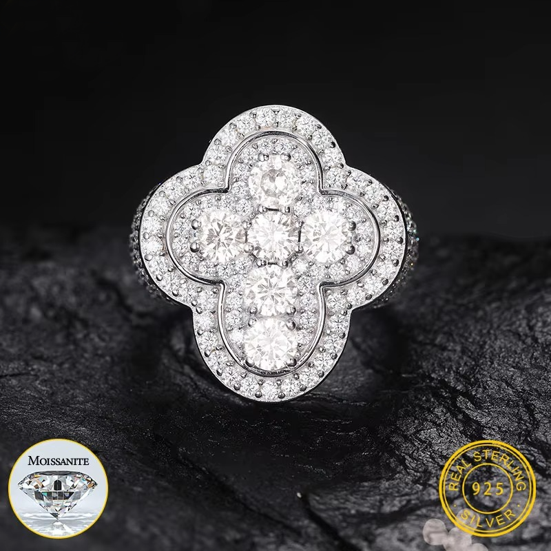 925 Silver Cross Ring Moissanite Stone Iced Out Couple Rings for Women Men Hip Hop Gifts
