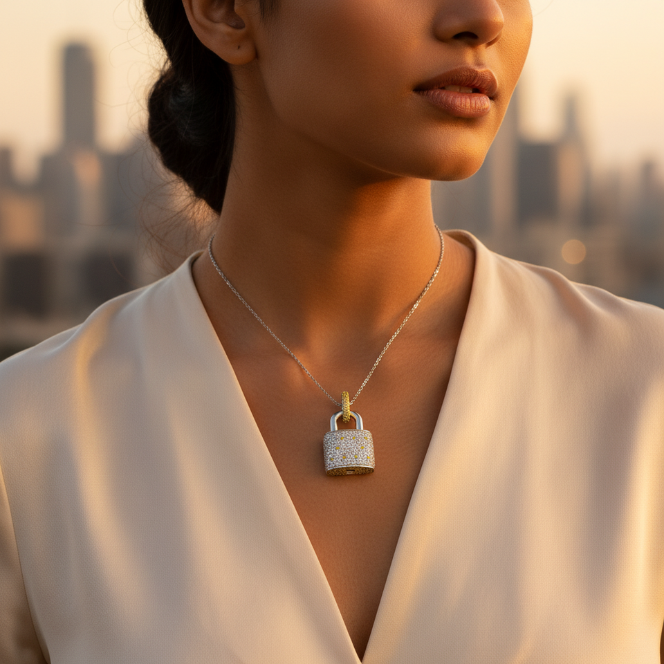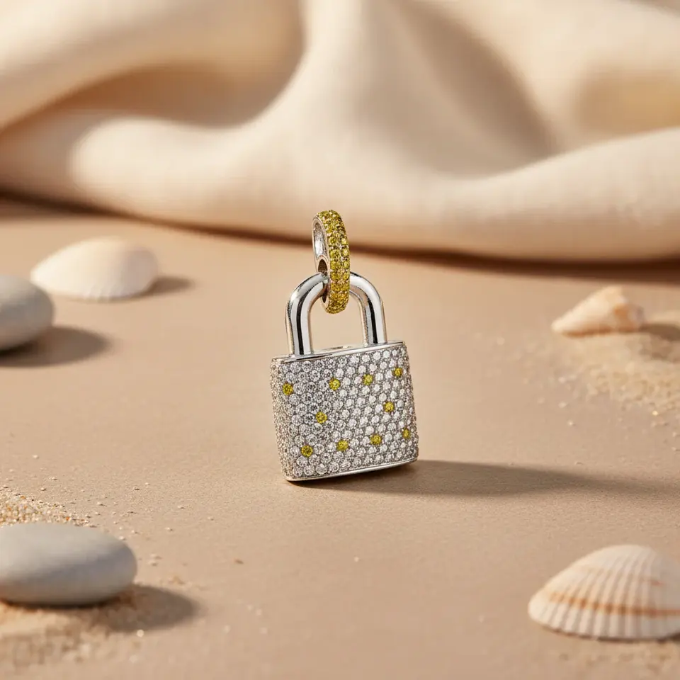 925 Silver Cubic Zirconia Padlock Pendant for Women Fashion Religious Jewelry Number Water Drop Pattern Rose Gold Charm Pendant
