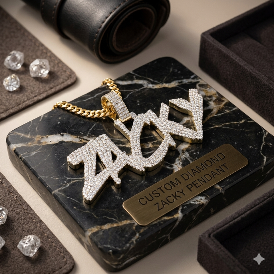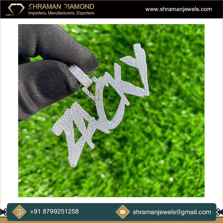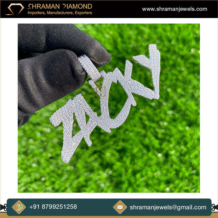 925 Silver Custom Iced Cursive Initial Block Letter Name Pendant Necklace Charm Brilliant Cut Diamond Hip Hop Style Personalized