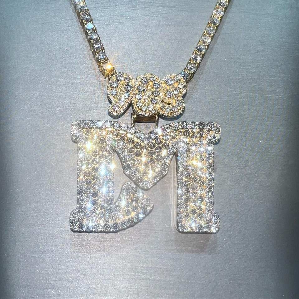 925 Silver Custom Letter Name Pendant Round Moissanite Diamond Hip Hop Jewelry Iced Out Charm Name Necklace Birthday Gift