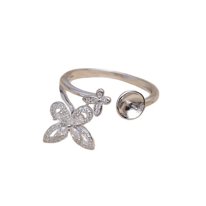 925 Silver DIY Accessories Open Ring Stand & Butterfly Rings Semi Finished 8-10 Loose Pearls Jewelry 5877