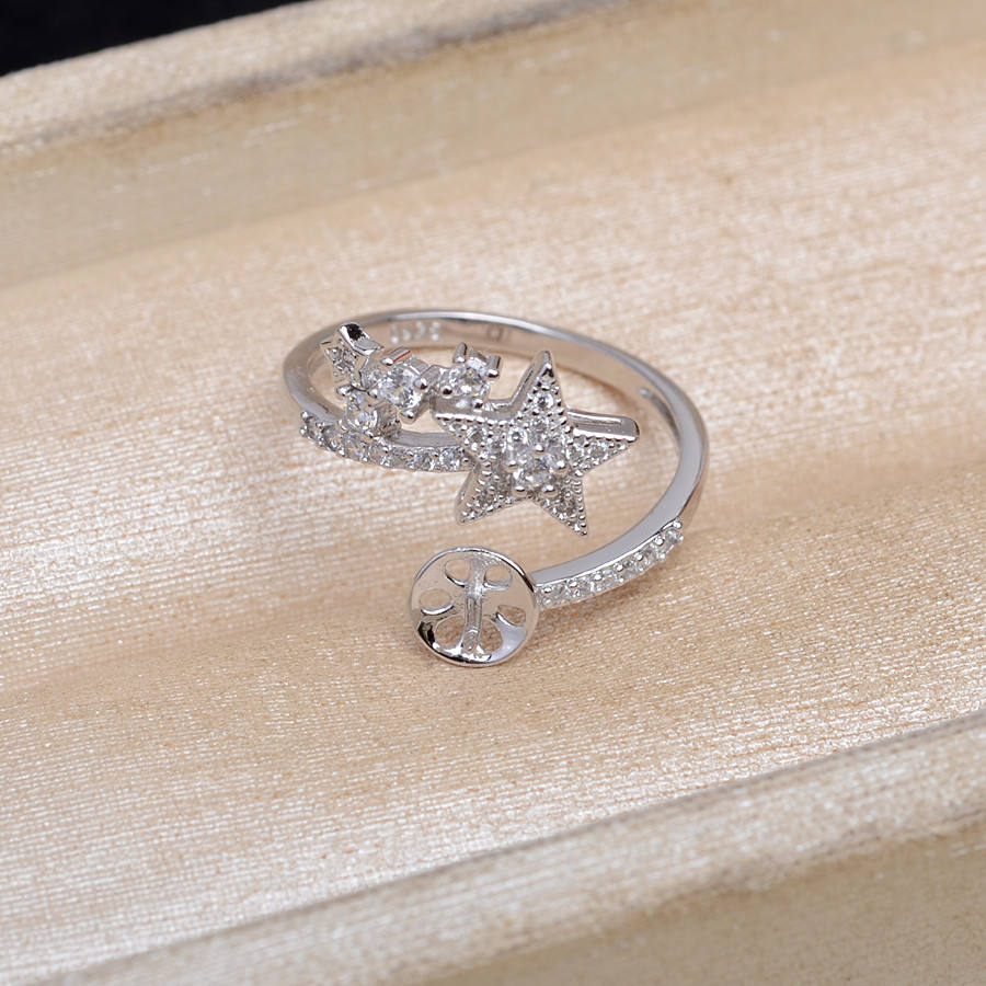 925 Silver DIY Accessory Open Pentagram Ring Holder with 8-10mm Bead Empty 5814 Ring Holder for Jewelry Fitting