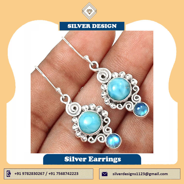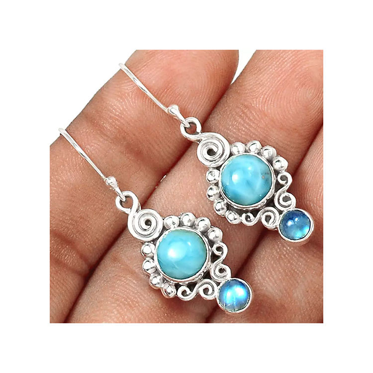 Keyword:Larimar & Moonstone Natural Gemstone Silver Handmade Earrings Jewelry