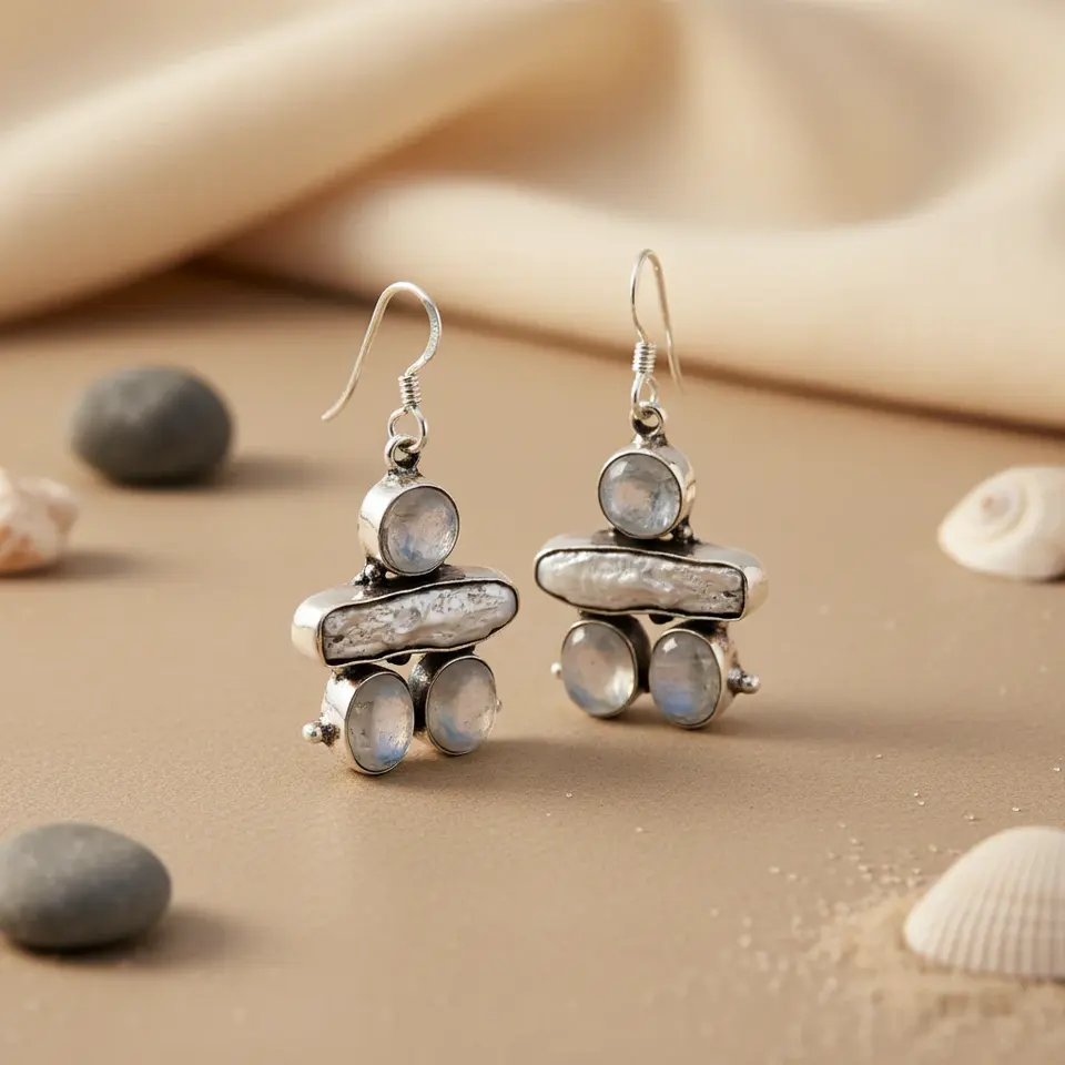 925 Silver Drop Earrings Moonstone Trendy Dangle Heart-shaped Design for Wedding Party Gift Featuring Pearl Diamond Zircon Stone