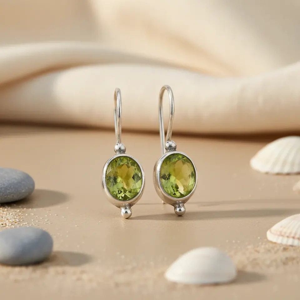 925 Silver Drop Earrings for Women Green Peridot Gemstone Fashion Jewelry