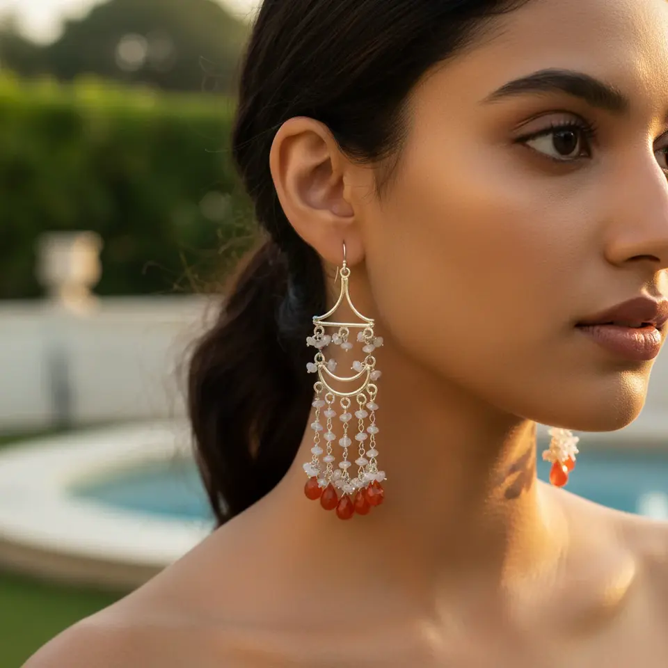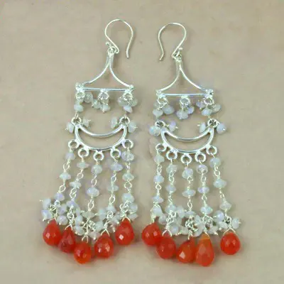 925 Silver Fashion Chandelier Earrings for Women Featuring Carnelian Gemstones
