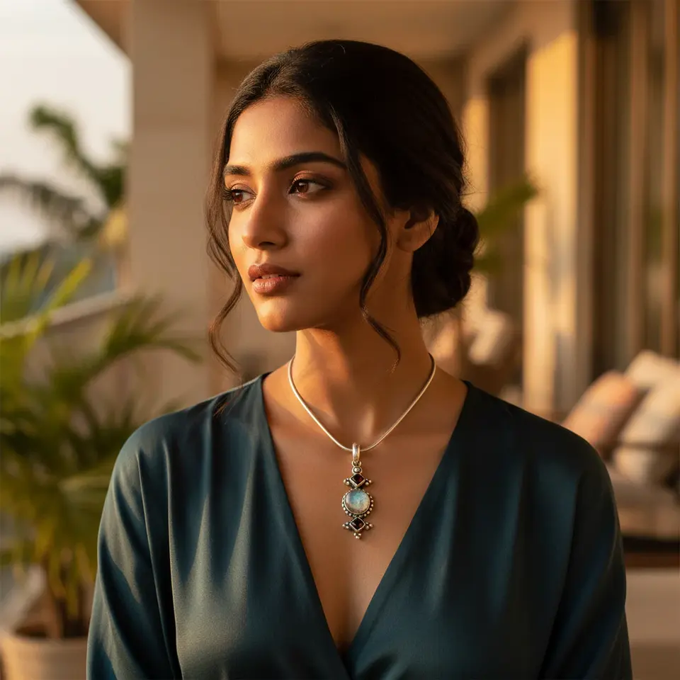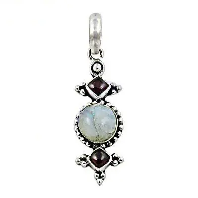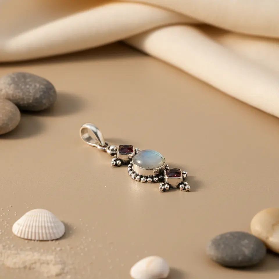 "925 Silver Fashion Pendant Necklace with Moonstone & Garnet for Women-Gift"