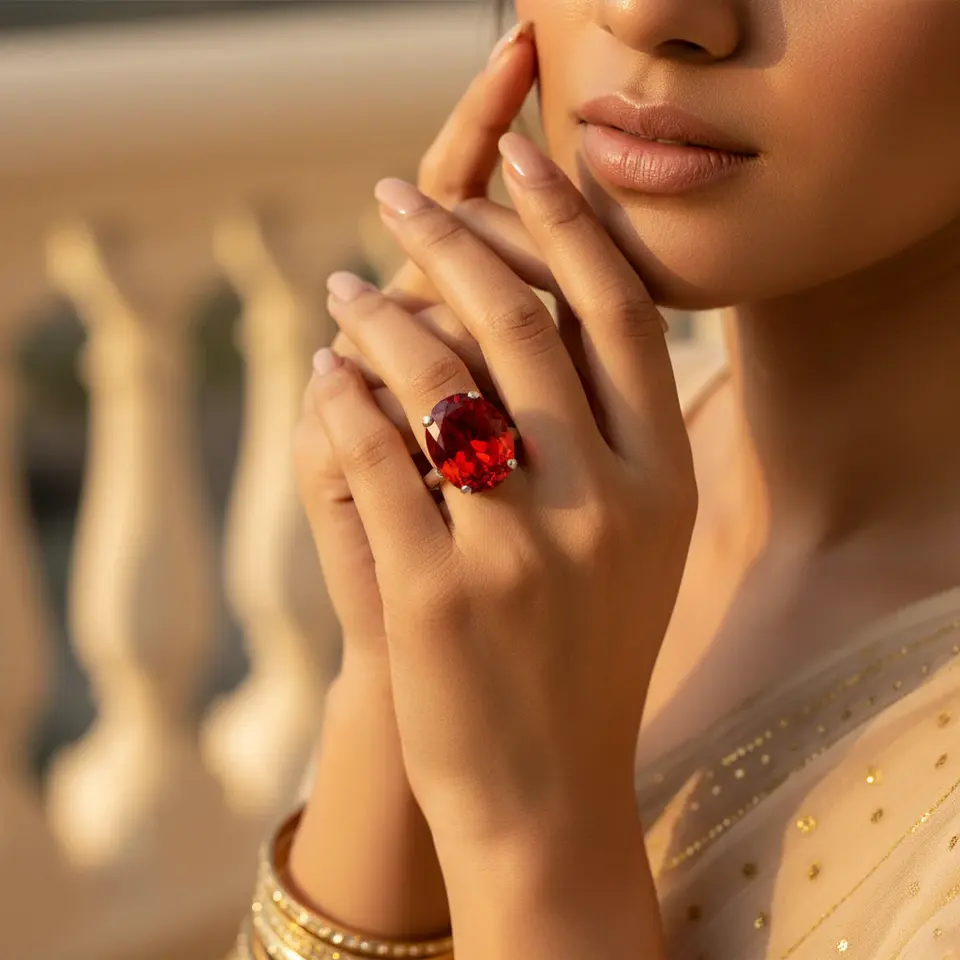 "925 Silver Fashion Ring with Red Gemstone for Women's Statement Jewelry"