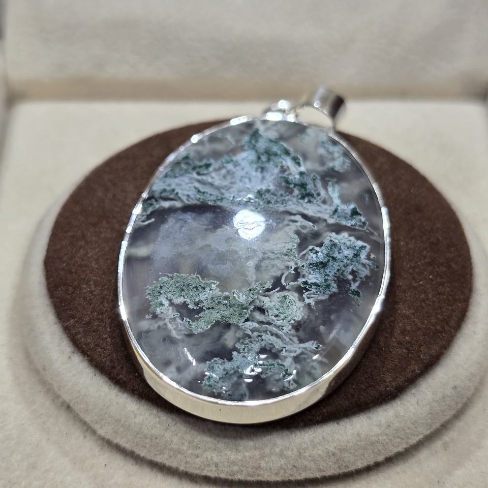 925 Silver Fine Pendant & Charm Handmade Designer Emerald Cut with Moss Agate Gemstone Excellent Quality Bezel Setting Jewelry