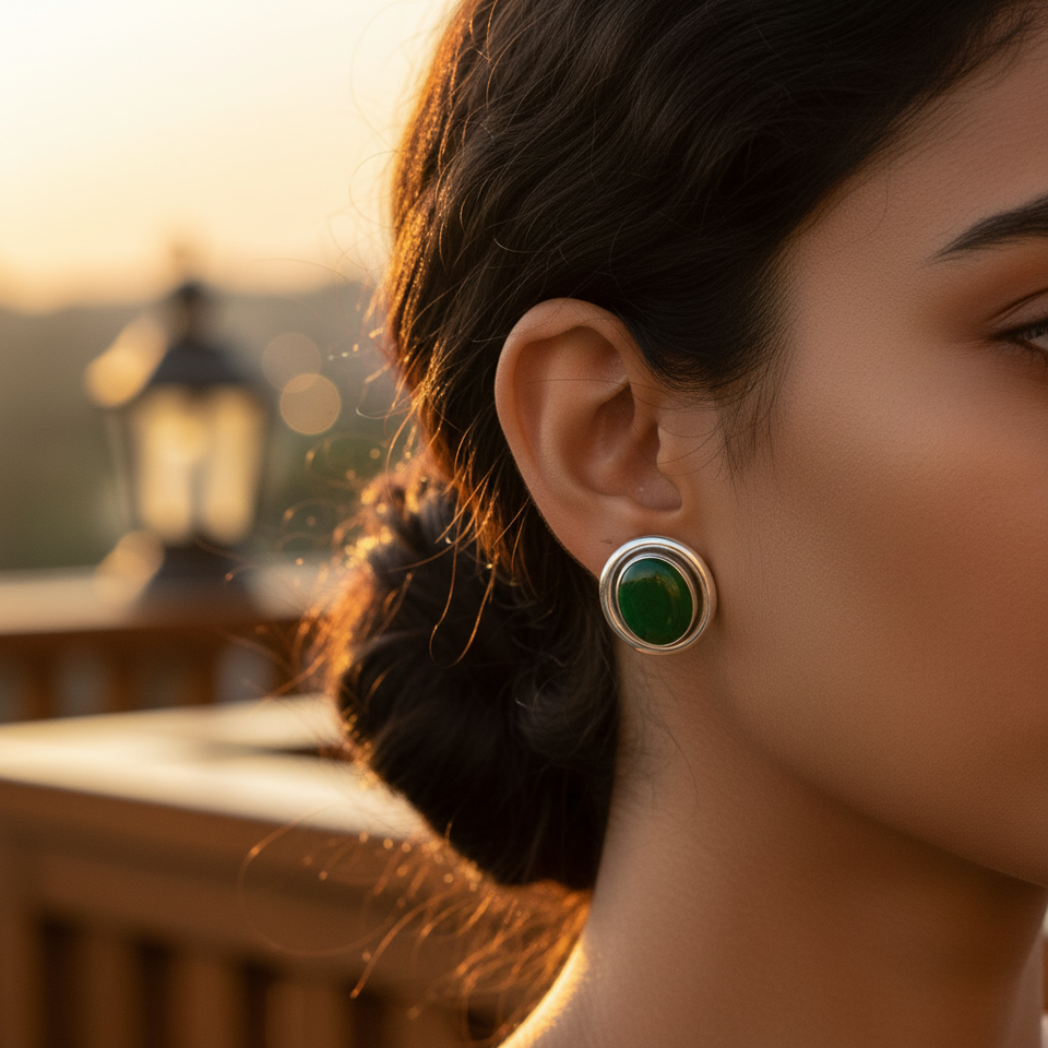 925 Silver Fine Stud Earrings with Jade Gemstone Elegant Ring Jewelry Gift for Women