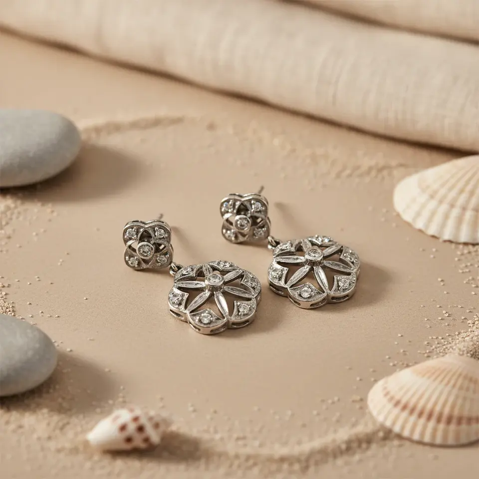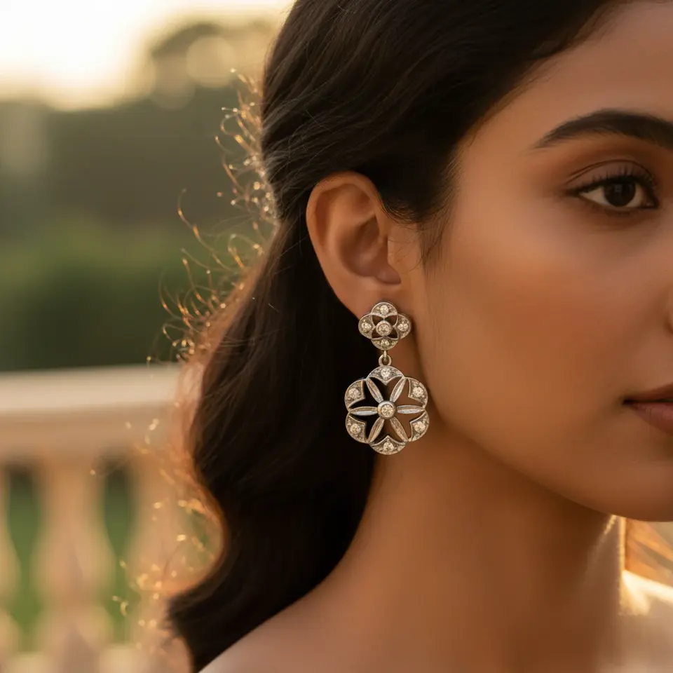 925 Silver Flower Drop Earrings with Diamond Accents Elegant Women's Jewelry
