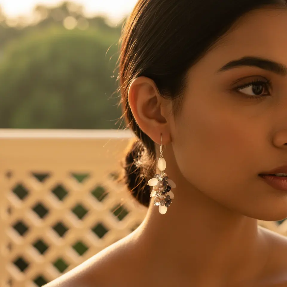 925 Silver Freshwater Pearl Drop Earrings for Women Vintage Style Gemstone Dangle Jewelry Gold Plating Emerald Flower Pattern