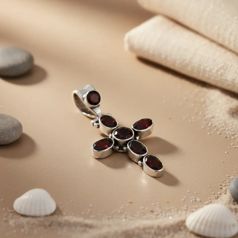 925 Silver Garnet Cross Pendant Necklace with Ruby Amethyst Women's Gift Jewelry Featuring Rose Gold Platinum Charm Pendants
