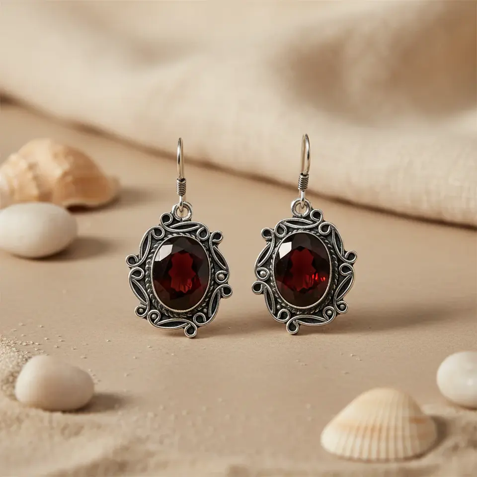 925 Sterling Silver,Garnet Gemstone