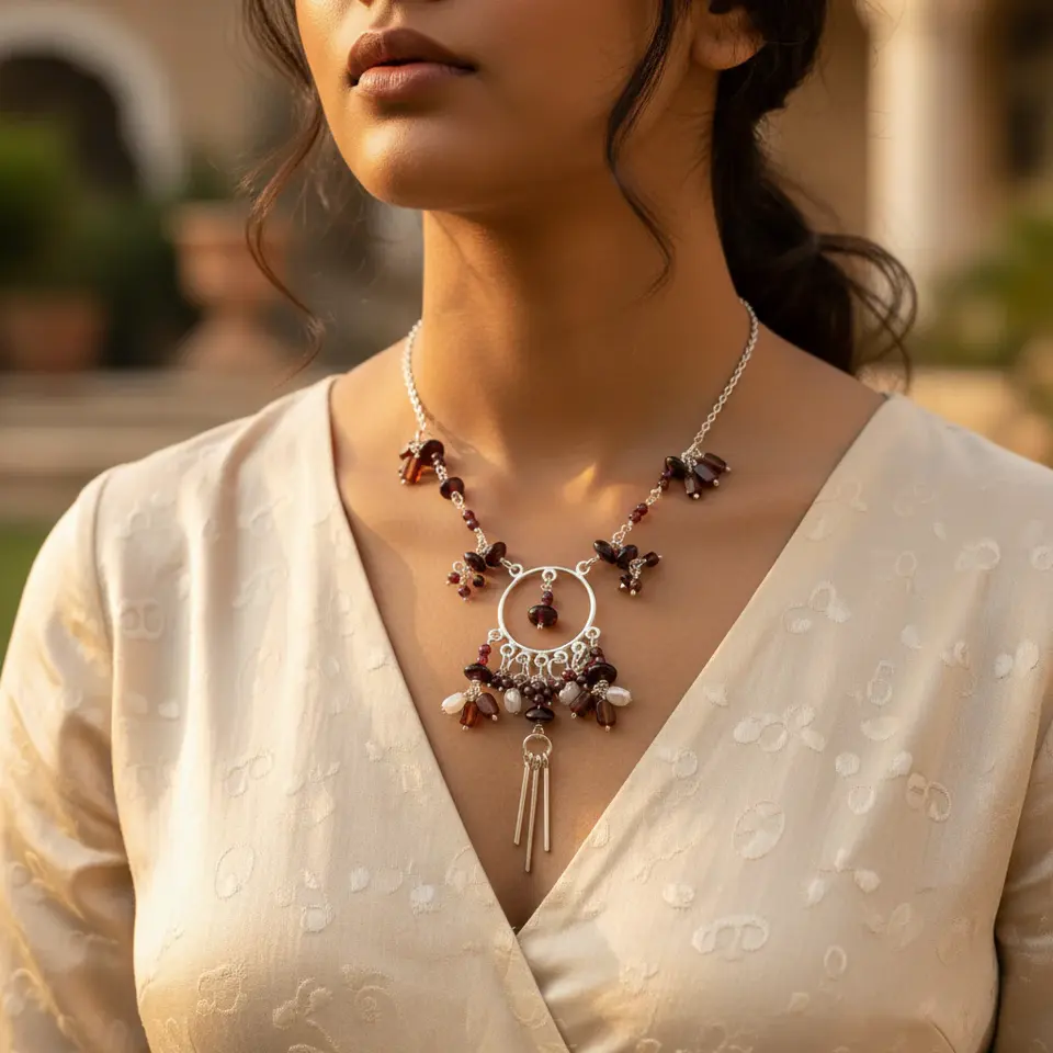925 Silver Garnet Statement Necklace for Women Fashion Jewelry