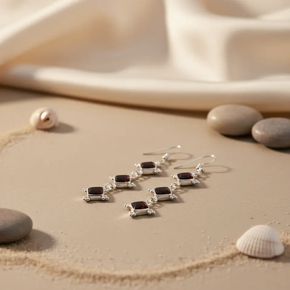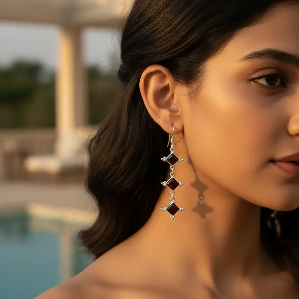 925 Silver Gemstone Jewelry Women's Drop Earrings with Garnet Fashionable Accessories