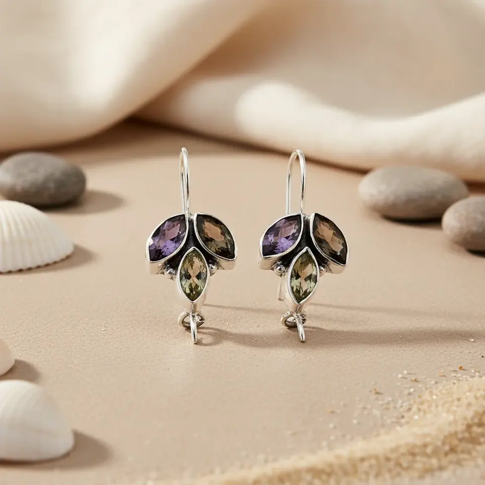 925 Silver Gemstone Leaf Drop Earrings for Women Gold Plated Diamond Dangle Earrings Geometric Pattern for Wedding Party Gift