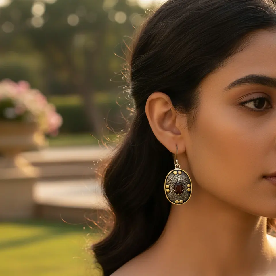 "925 Silver Gold-Plated Garnet Dangle Earrings for Women's Trendy Jewelry"