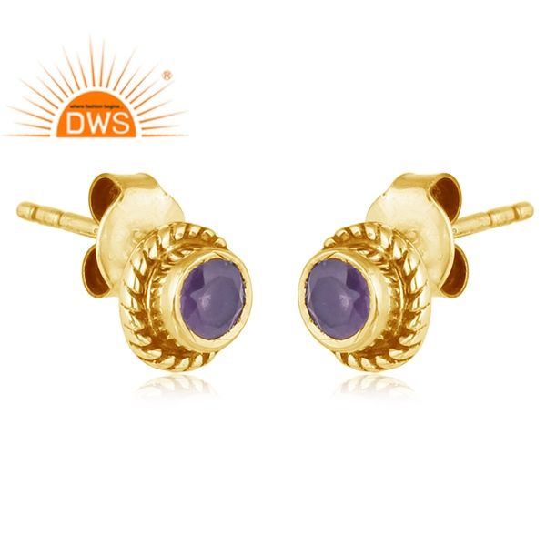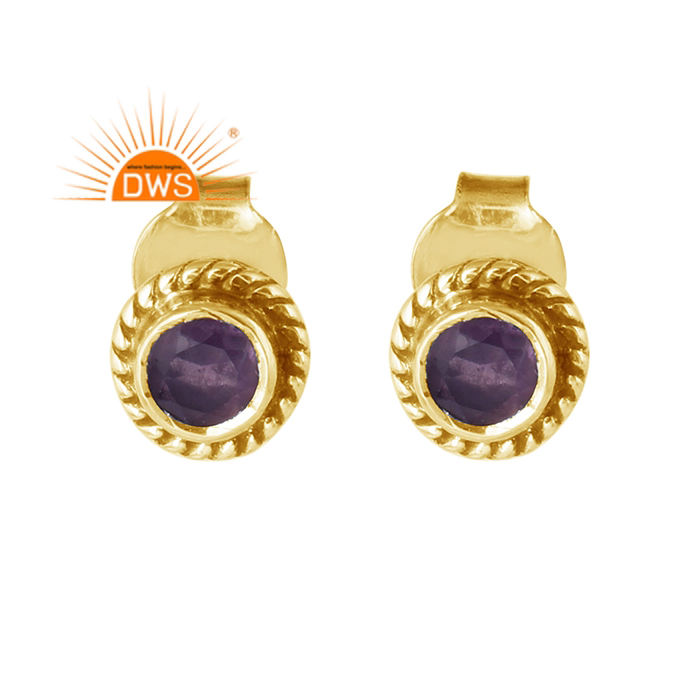 925 Silver Gold Plated Stud Earrings Designer Silver Jewelry Manufacturer Amethyst Gemstone Earrings