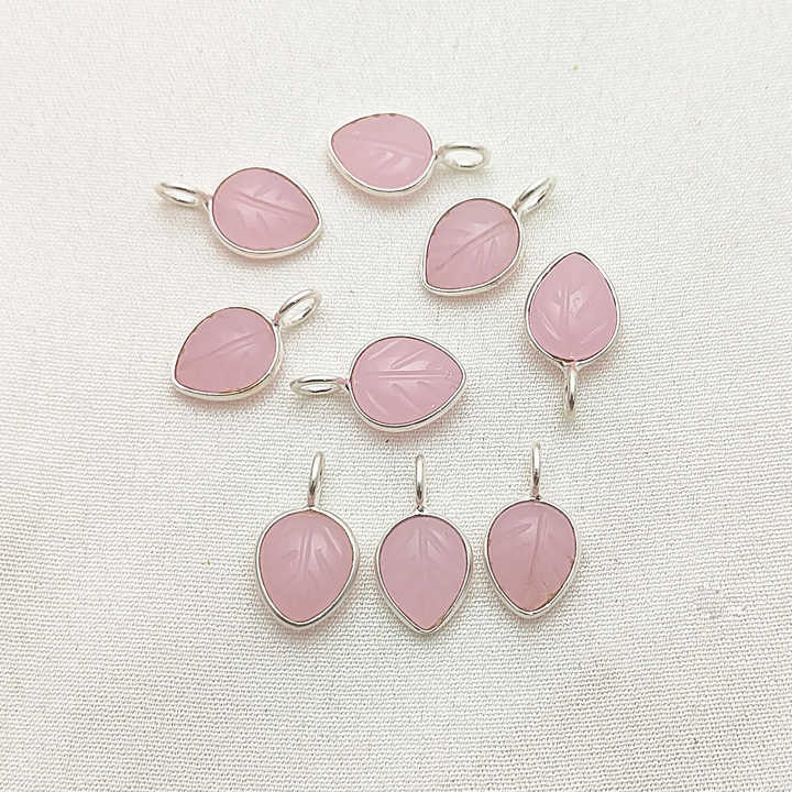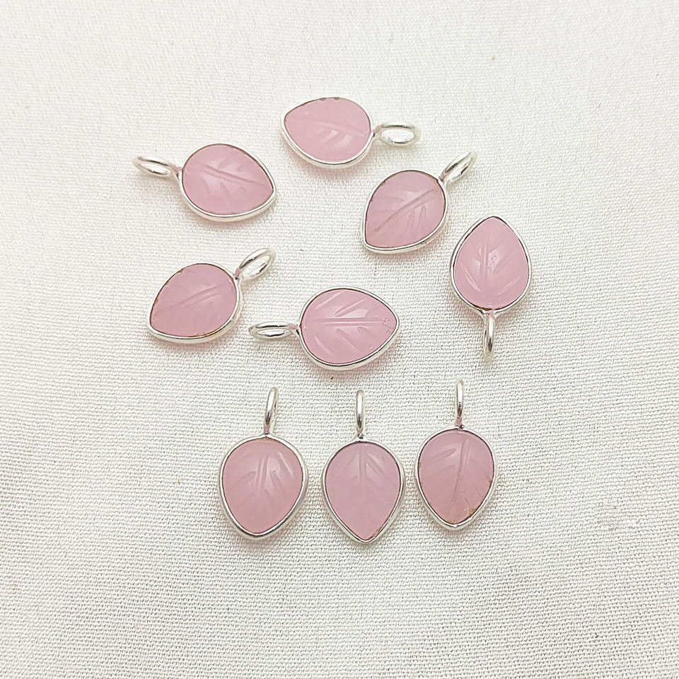 925 Silver Gold Vermeil Ethereal Pink Chalcedony Pendant Leaf Carving Handmade Ethnic Fine Jewelry for DIY Craft Supplies Charms