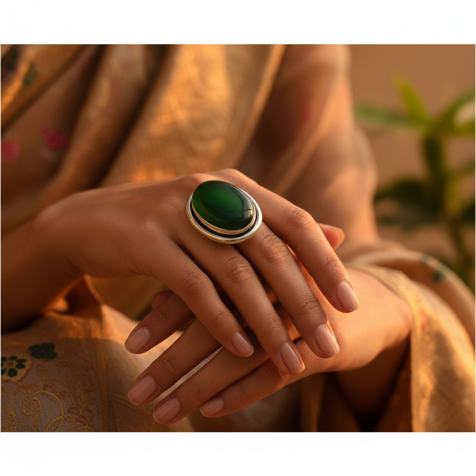925 Silver Green Onyx Statement Ring for Women Elegant Jewelry Accessory